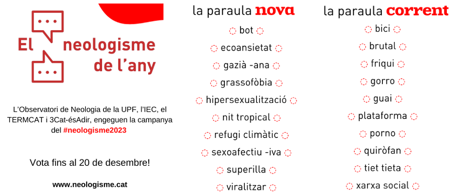 Es pot votar a neologisme.cat fins al 20 de desembre i el dijous 21 es farà públic el resultat.