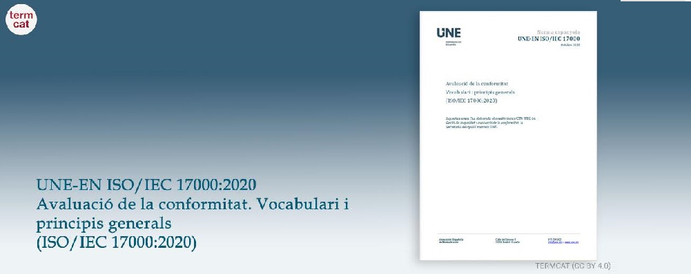El Centre de Terminologia TERMCAT ha elaborat la versió catalana de la norma tècnica UNE-EN ISO/IEC 17000:2020 Avaluació de la conformitat. Vocabulari i principis generals, en el marc de la col·laboració que el TERMCAT manté amb l’Associació Espanyola de Normalització, UNE.