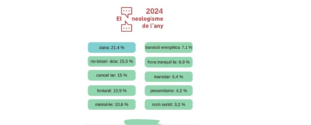 El neologisme de l’any pretén acostar la llengua als parlants i fer visibles els temes que han interessat durant l’any. El neologisme guanyador del 2024 és dana (21,4 % dels vots).