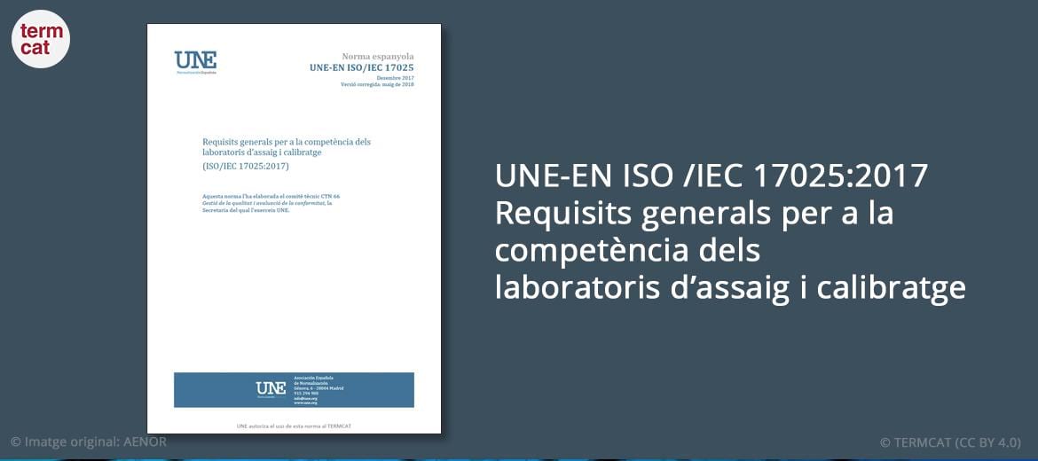 Gràcies al conveni entre la Diputació de Barcelona i el Departament de Cultura de la Generalitat de Catalunya, el TERMCAT ha traduït la norma UNE-EN ISO/IEC 17025:2017 Requisits generals per a la competència dels laboratoris d'assaig i calibratge.
