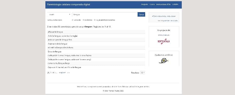 La Paremiologia catalana comparada digital (PCCD) és una eina de consulta al corpus fraseològic, recopilat per Víctor Pàmies i basat en fonts ben diverses (orals, escrites i digitals). Pretén recopilar les expressions figurades de la llengua catalana des dels orígens fins a l’actualitat. És un recull de fraseologia en el sentit més ampli possible d’entendre-la: locucions, frases fetes, refranys, proverbis, citacions, embarbussaments… Tot allò que sigui llenguatge figurat hi té cabuda. En aquesta primera versió, dona accés a més de 150.000 parèmies (una quarta part de les més de 650.000 que conté la base de dades).