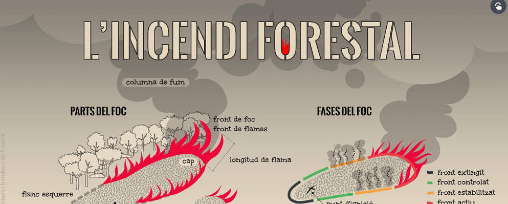El TERMCAT ha publicat la infografia interactiva L’incendi forestal, elaborada amb l’assessorament d’experts de l’Institut de Seguretat Pública de Catalunya i del Departament d’Interior de la Generalitat de Catalunya. Aquesta infografia il·lustra un conjunt de termes relacionats amb els incendis que es poden produir en l’entorn forestal.